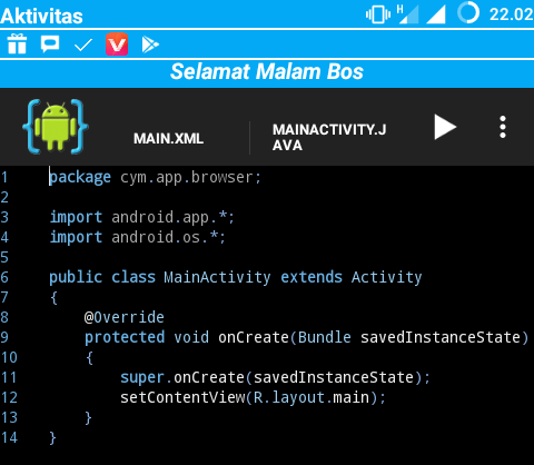 Hallo semua, diartikel kali ini kita akan membahas tentang membuat aplikasi browser android sederhana dengan AIDE.AIDE merupakan aplikasi android yang berfungsi sebagai: pembuat aplikasi android, pembelajaran membuat aplikasi android, pembuat game android sederhana, memberikan pembelajaran tentang beberapa bahasa program, dan lain sebagainya.Untuk mendapatkan aplikasinya anda dapat mengunduhnya di Google Play Strore (berbayar) atau cari digoogle dengan kata kunci “download aplikasi Aide mod full version”.