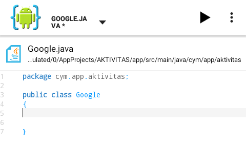 - Kemudian ubah: “public class Google” menjadi “public class Google extends WebView”.