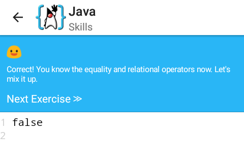 Kemudian anda tekan tombol “Next Exercise”, dan Selesai….. Tahap Relational Operators telah selesai.