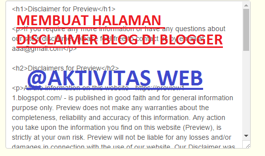 - Kemudian buka blogger anda dan buat halaman baru, selanjutnya masuk ke mode HTML, dan paste kan disclaimer yang sudah anda copy tadi.