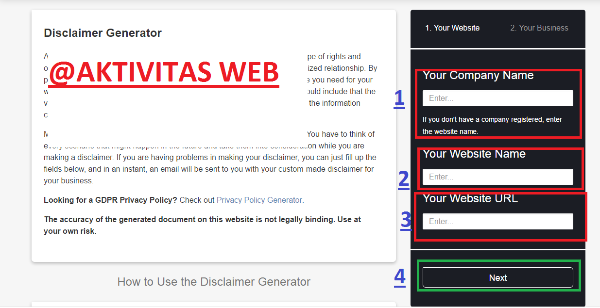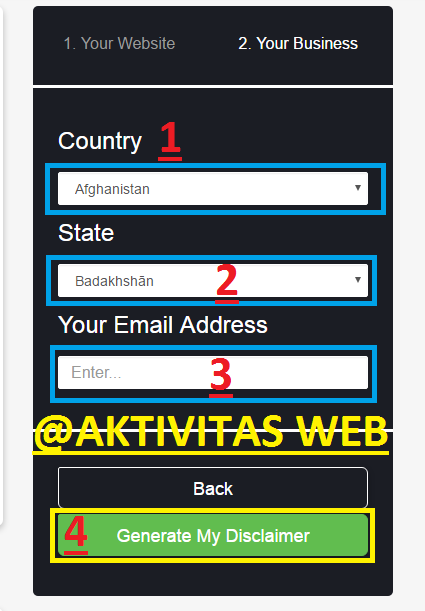 - Langkah pertama adalah anda kunjungi Situs Disclaimer Generator ini.