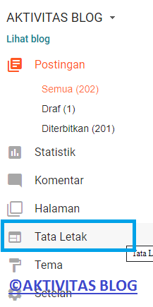 - Selanjutnya, dibagian menu sebelah kiri anda pilih Tata Letak, maka anda akan memasuki pengaturan tata letak blog anda. (lihat gambar dibawah)