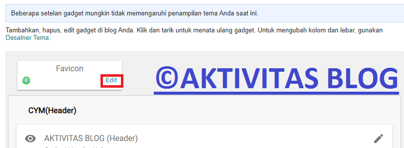 - Dibagian kanan akan terlihat bagian Favicon, kemudian anda klik edit. (lihat gambar dibawah)