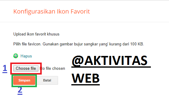 Dibagian Choose file anda pilih gambar favicon yang sudah anda siapkan. (Perlu diingat disini, untuk gambar Favicon yang disarankan harus berbentuk bujur sangkar (maksudnya panjang dan lebarnya haruslah sama), dan berukuran maksimal 99 Kb.). Setelah anda pilih gambarnya kemudian klik Simpan.